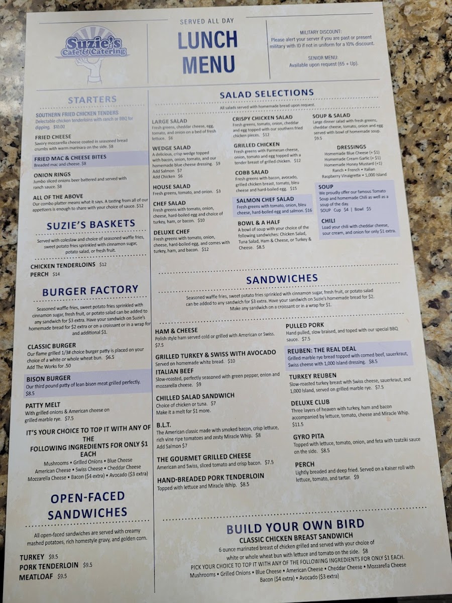 Whether you're stopping in for a casual meal or a family gathering, Suzie's promises an enjoyable culinary experience!